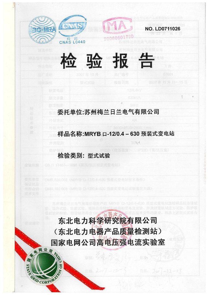 (成套)MRYB高壓預裝變電站資質證書