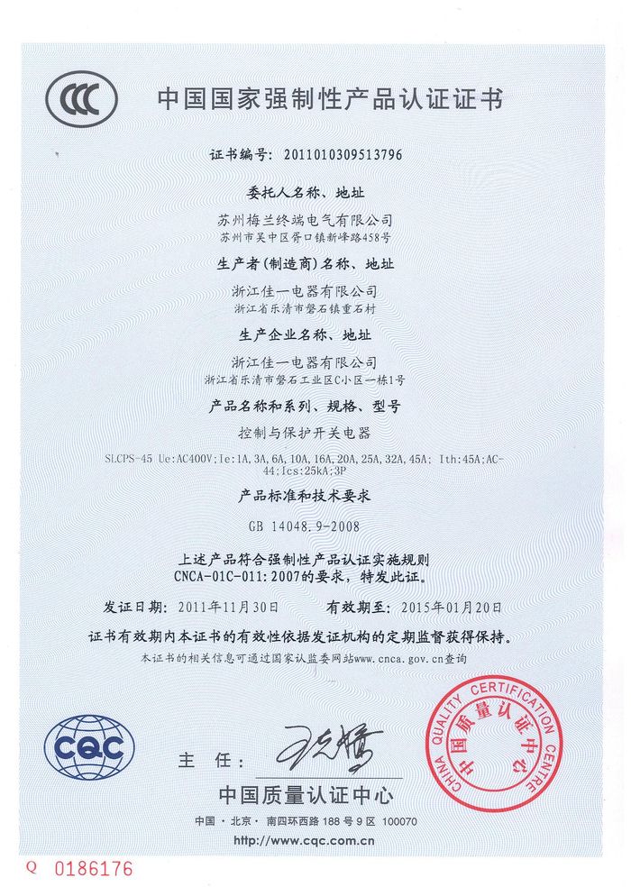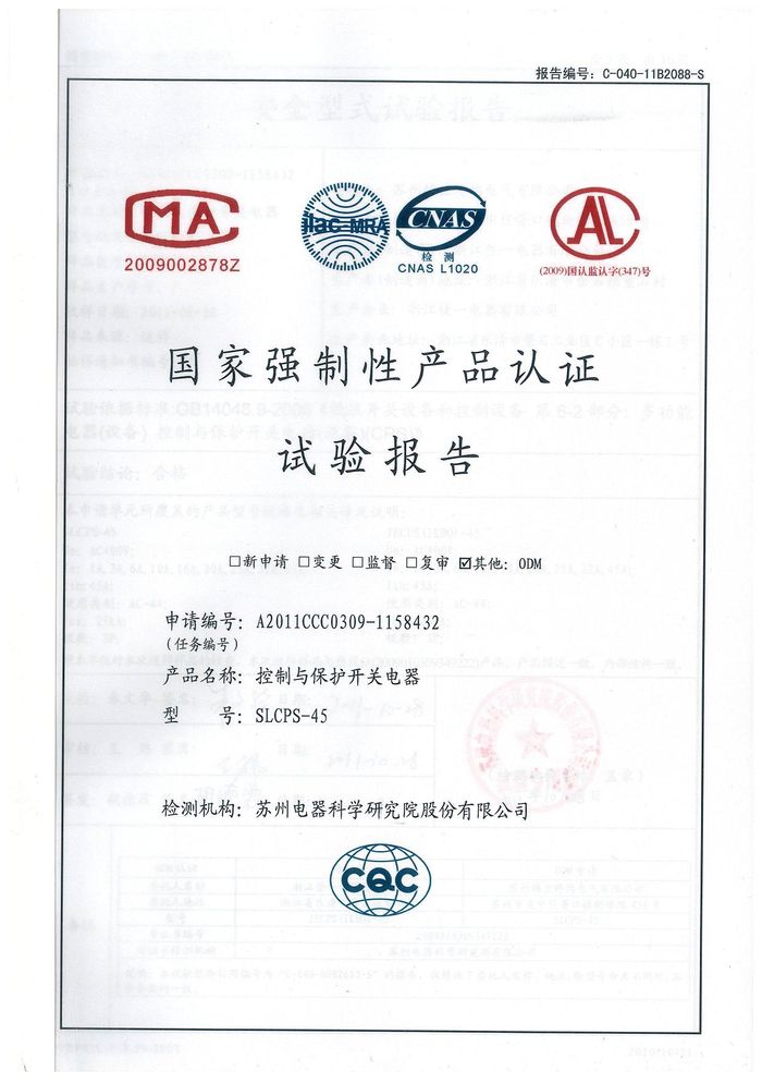 SLCPS-45控制與保護(hù)開關(guān)資質(zhì)證書
