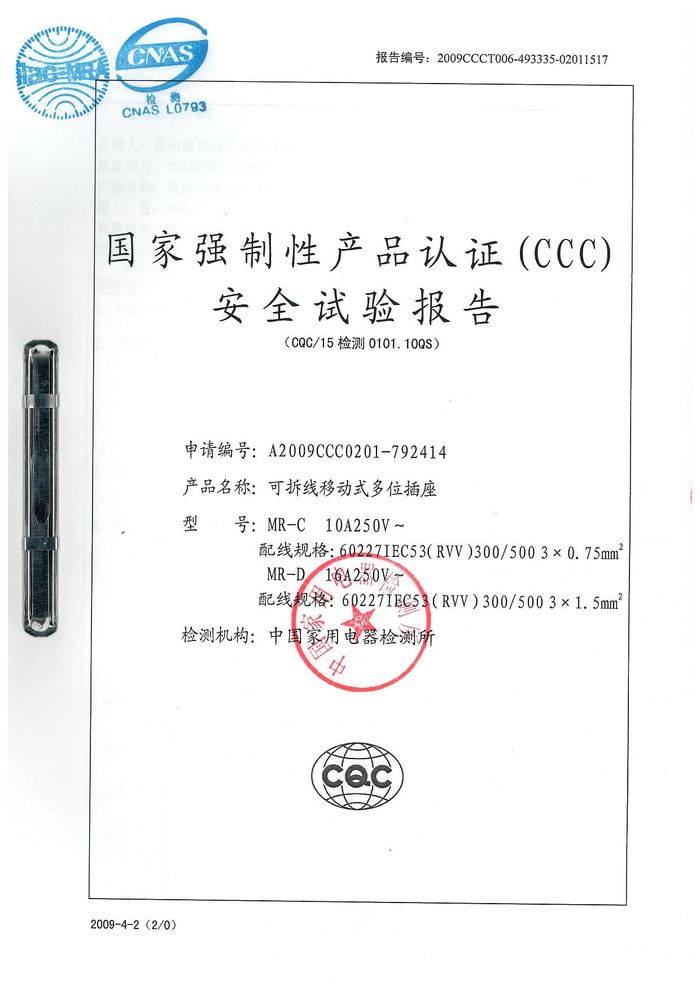 MR-C排插資質(zhì)證書