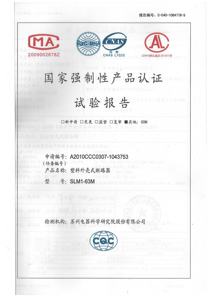 SLM1-63M塑殼斷路器資質(zhì)證書(shū)