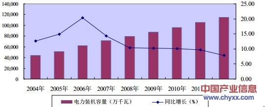 2004-2012年中國電力裝機(jī)容量及其變化趨勢