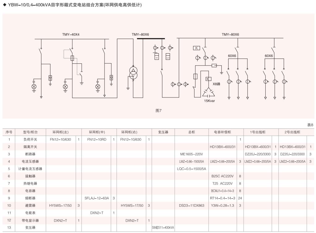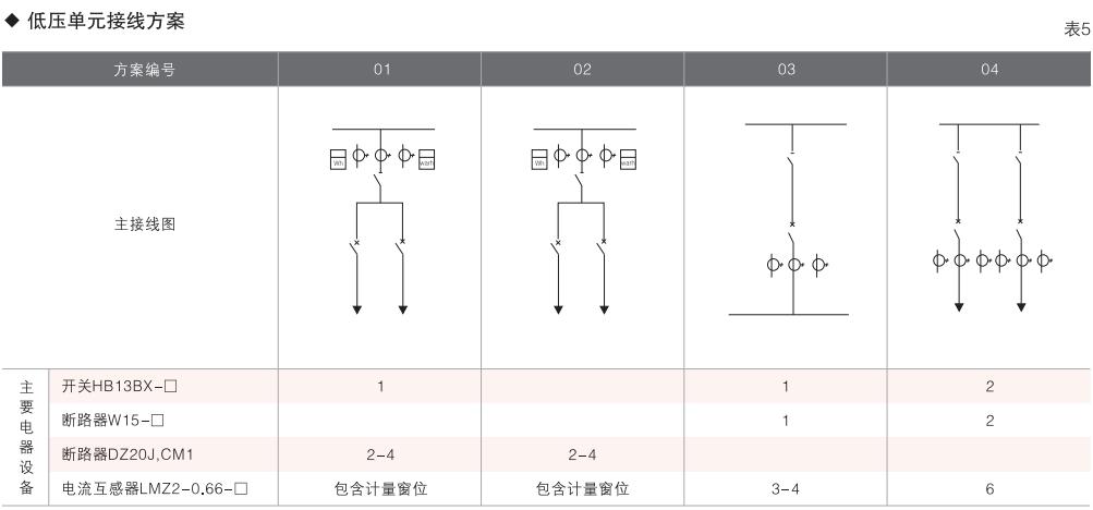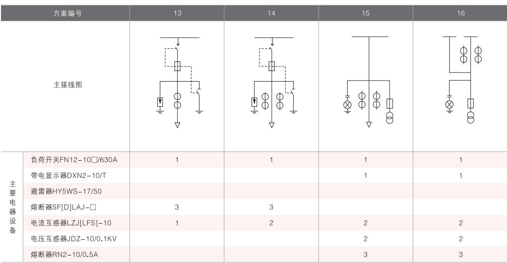 表6~列舉了一些典型組合接線方案,供用戶和設(shè)計(jì)單位參考。(以配裝壓氣式負(fù)荷開關(guān)為例)