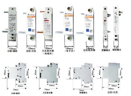 注:分勵+輔助、欠壓脫扣器安裝尺寸相同,報(bào)警觸頭與輔助觸頭安裝尺寸相同