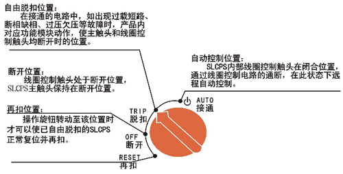 SLCPS操作機(jī)構(gòu)的工作狀態(tài)在主體面板上的符號及指示器位置含義如下圖 所示。