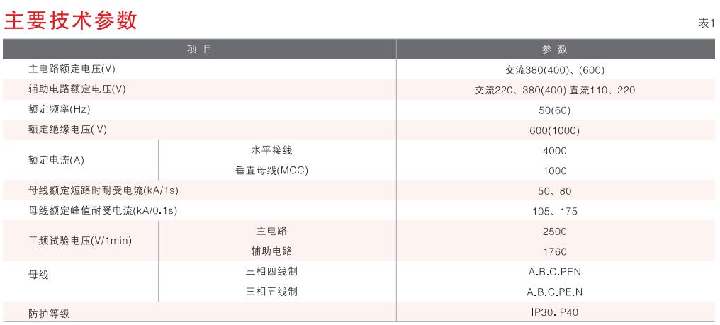開關(guān)設(shè)備主電路方案共32組118個(gè)規(guī)格(見表2).不包括由于輔助電路的控制與保護(hù)的變化而派生的方案和規(guī)格。包括了發(fā)電、供用電和其它電力用戶的需要,額定工作電流為4000A,適合2500kVA及以下的配電變壓器選用。